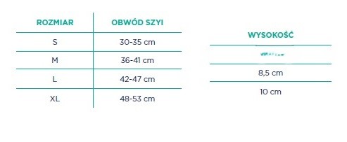 W celu prawidłowego dopasowania rozmiaru należy dokonać pomiaru obwodu szyi, ustalić wysokość kołnierza, a następnie wybrać rozmiar.